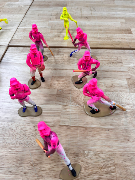 Choose from 5 different head/sport combos. Comes randomly assorted in a blind bag with header card. 1 in 10 are a day glow yellow chase variant.